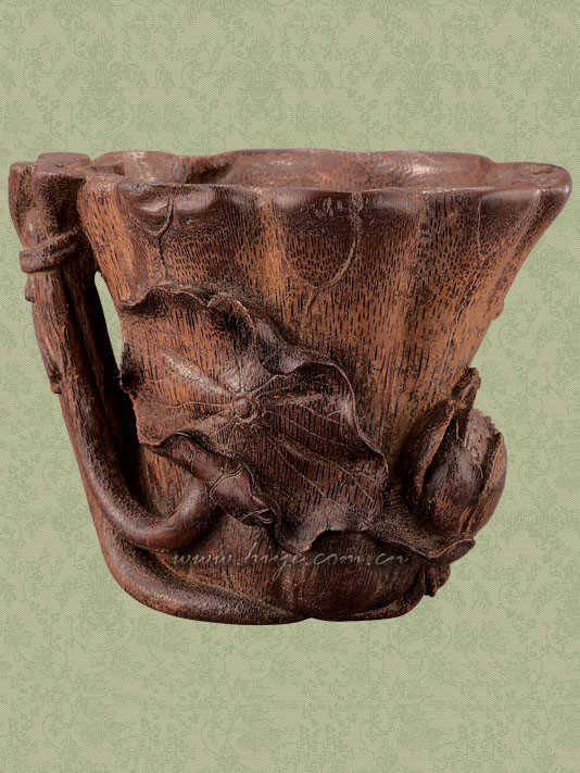 用镂空和圆雕技法,荷花枝叶缠杯,